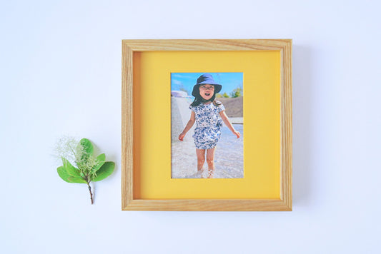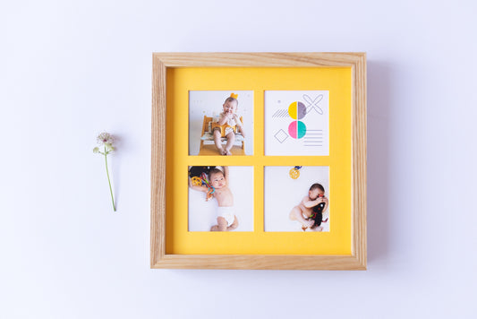 Qurumuのオリジナル写真フレーム(中枠)に綴じた写真を、美しい杢目の額で額装した上質な”写真立て”です。 スタンド出来る部品付で、棚やデスクに立てかけたり、壁にかけたり、2通りの飾り方が楽しめます。また、紙製の写真フレームのカラーは3色、写真のプリントサイズは2サイズからお選び頂けるので、飾る写真のムードや飾る場所にあわせて差し替えも可能です。商品内容 :額+写真フレーム2枚+アクリル板写真サイズ2種 :ましかく/8.9cm×8.9cm 2L /12.7cm×17.8cm写真フレーム色3種:White2枚 Yellow1枚+White1枚 Charcoal1枚+White1枚額外寸 :25.4cm×25.4cm×3.3cm写真フレーム・紙製:23.6cm×23.6cm